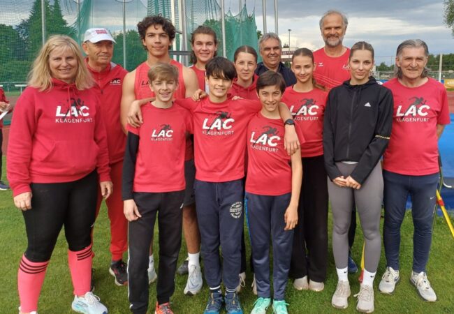 Beim Meeting in Klagenfurt glänzten die LAC-Masters gleich mit zwei Landesrekorden! Über die 1500 Meter stürmte Walter Jakobitsch zum Landesrekord (7:38,11min), über die 200 Meter kämpfte sich Valentin Topitschnig in 31,31 zum M75-Rekord. Über zwei Klassensiege durfte sich Matthias Altenberger freuen. In der AK gewann er in 11,72 (mit persönlicher Bestleistung) im Speerwurf landet das 700g-Gerät bei 36,03 Meter (U18). Die…
