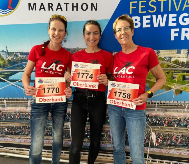 Am kommenden Sonntag findet in Linz/OÖ die Staatsmeisterschaft und österreichische Meisterschaften im Marathon statt. Der LAC-Klagenfurt hat ein sehr vielversprechendes Damenteam am Start. Letzte Jahr konnten die LAClerinnen Team-Bronze erkämpfen ( Foto zVg: Nadin Kazianka, Christine Klein, Andrea Herzog). Heuer wird in veränderter Zusammensetzung gestartet, neben den „Bronze“-Ladies, Nadin Kazianka (W40) und Andrea Herzog (W55) wird Christine Klein (W35) ihr Marathon-Debüt…