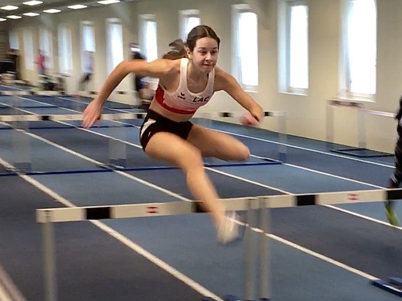 Elisabeth Golger (U16/Foto) stürmte gleich zwei Mal zu persönlichen Bestleistungen – 60 Meter Hürden (9,70s) und 60 Meter (8,20s).
