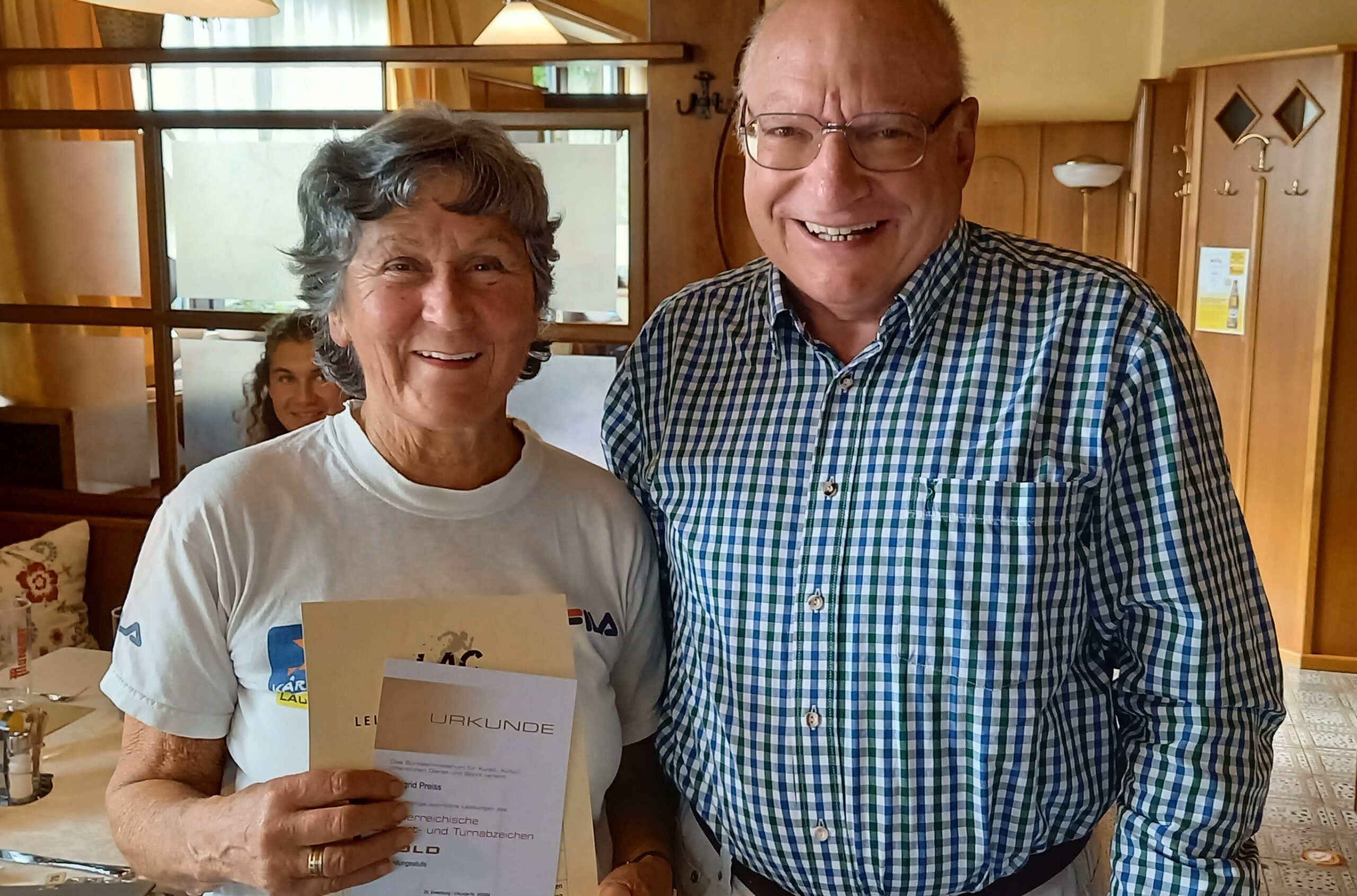 Bei der gestrigen ÖSTA-Ehrung haben wir uns auch Sigrid Preiss verabschiedet. Die gebürtige Sudetendeutsche war eine unserer ÖSTA-Athletinnen der ersten Stunden. Seit 2009 hat sie 14 ihrer 25 ÖSTA-Abnahmen im Rahmen unserer ÖSTA-Aktion absolviert. Begonnen hat die ehemalige Englischlehrerin ihre ÖSTA-Karriere bei Schani Lacker am KAC-Platz. Mit über 80 Jahren glaubt (zu unserem großen Leidwesen) die fitte Mutter von drei Buben, dass sie ihre ÖSTA-Karriere beenden muss – SCHADE, sie war immer ein großes Vorbild, dass zielgerichteter Sport auch im Alter Freude und Sinn macht.