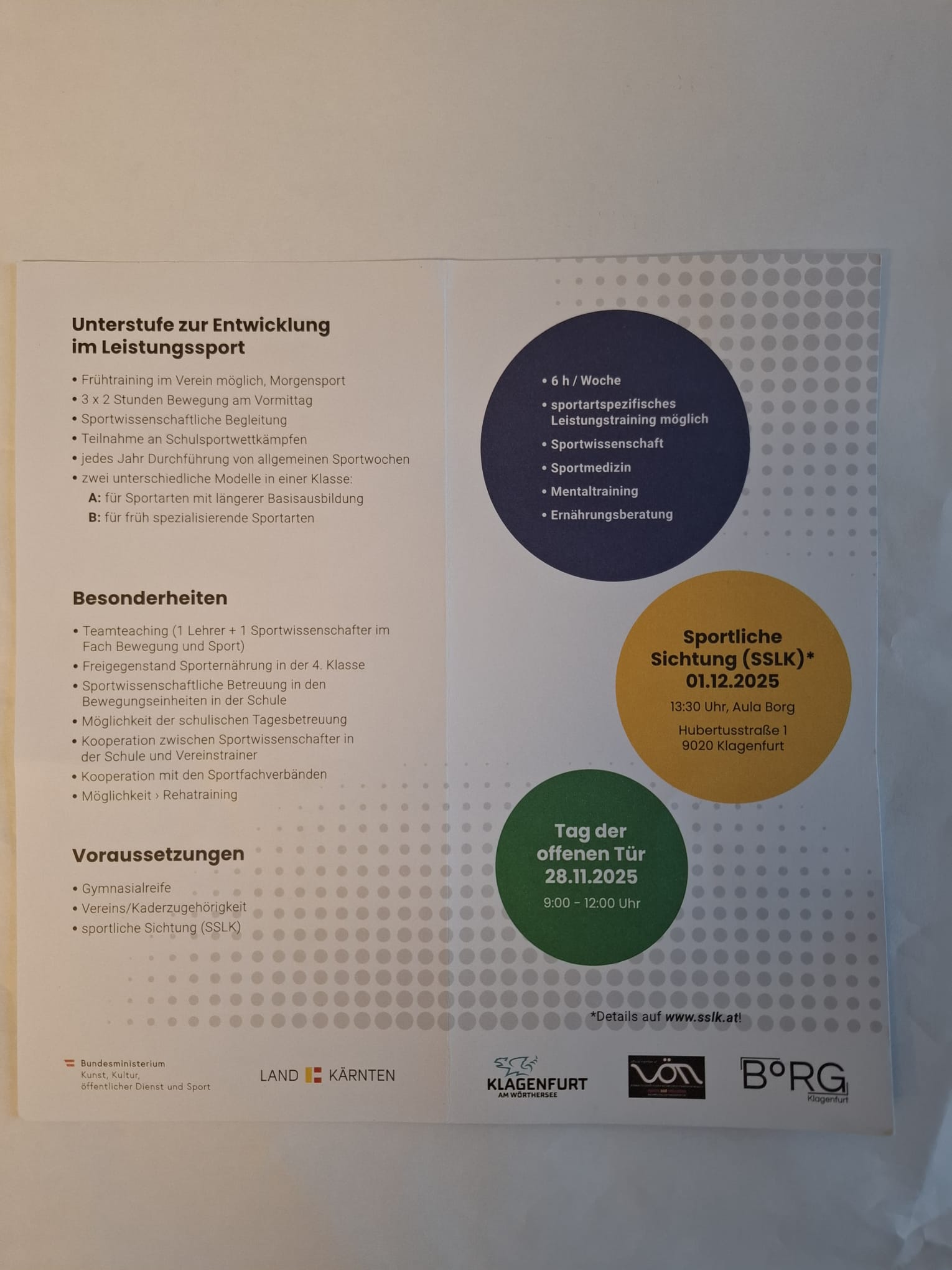 Sportborg UND Unterstufe für Leistungssport